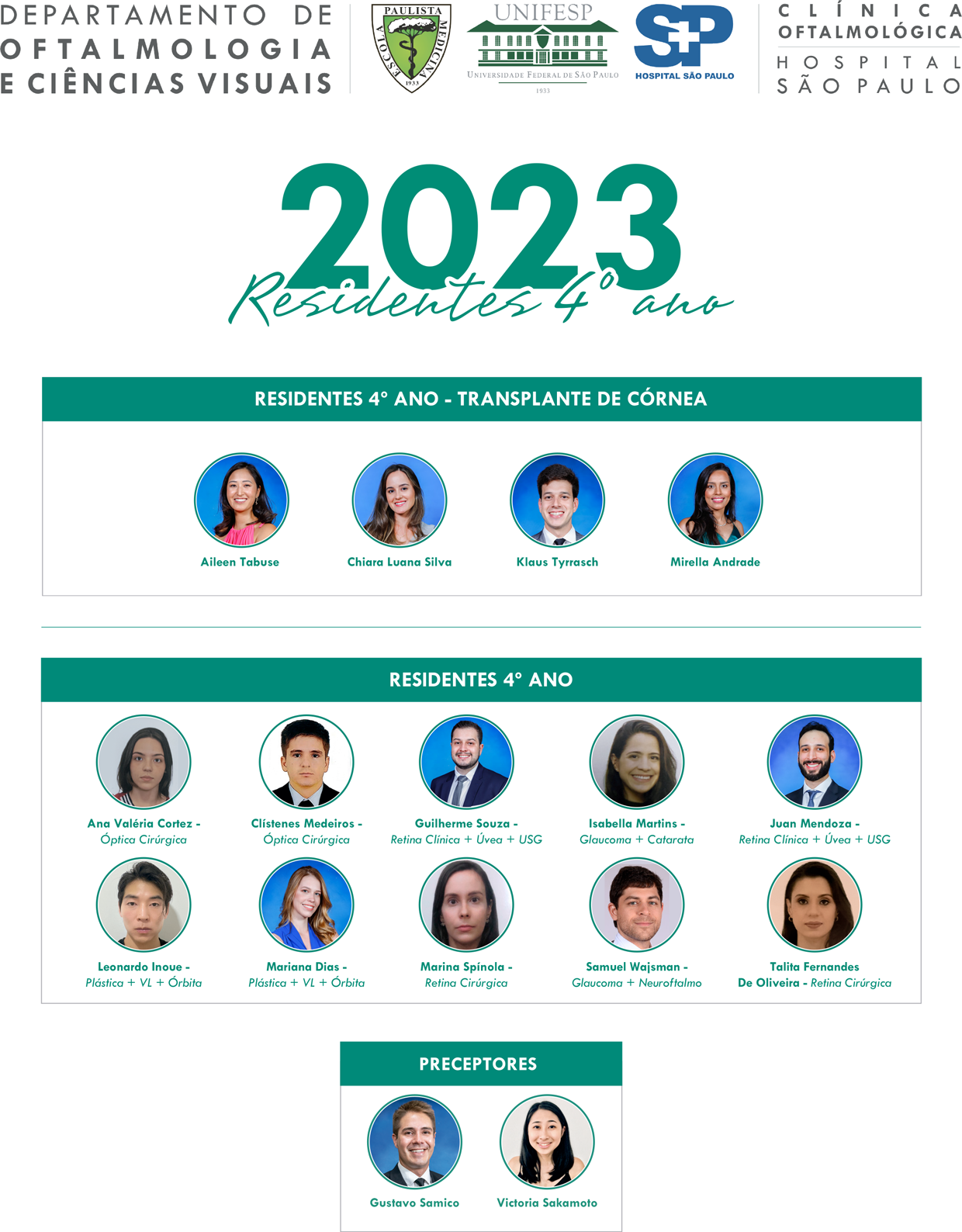 Durante os três anos obrigatórios, além do quarto ano opcional em transplante de córnea, os médicos residentes são expostos à mais moderna tecnologia, ao mesmo tempo em que aprendem a amadurecer o comprometimento social e espírito humanista exigidos da profissão médica, sob supervisão direta do corpo docente do Departamento de Oftalmologia e Ciências Visuais da EPM, notório pela constante atualização técnico-científica e pela liderança nos cenários nacional e internacional da Oftalmologia. Nosso programa pioneiro de “Mentoria na Residência” estabelece um processo de apoio à aprendizagem e desenvolvimento profissional e pessoal do residente.